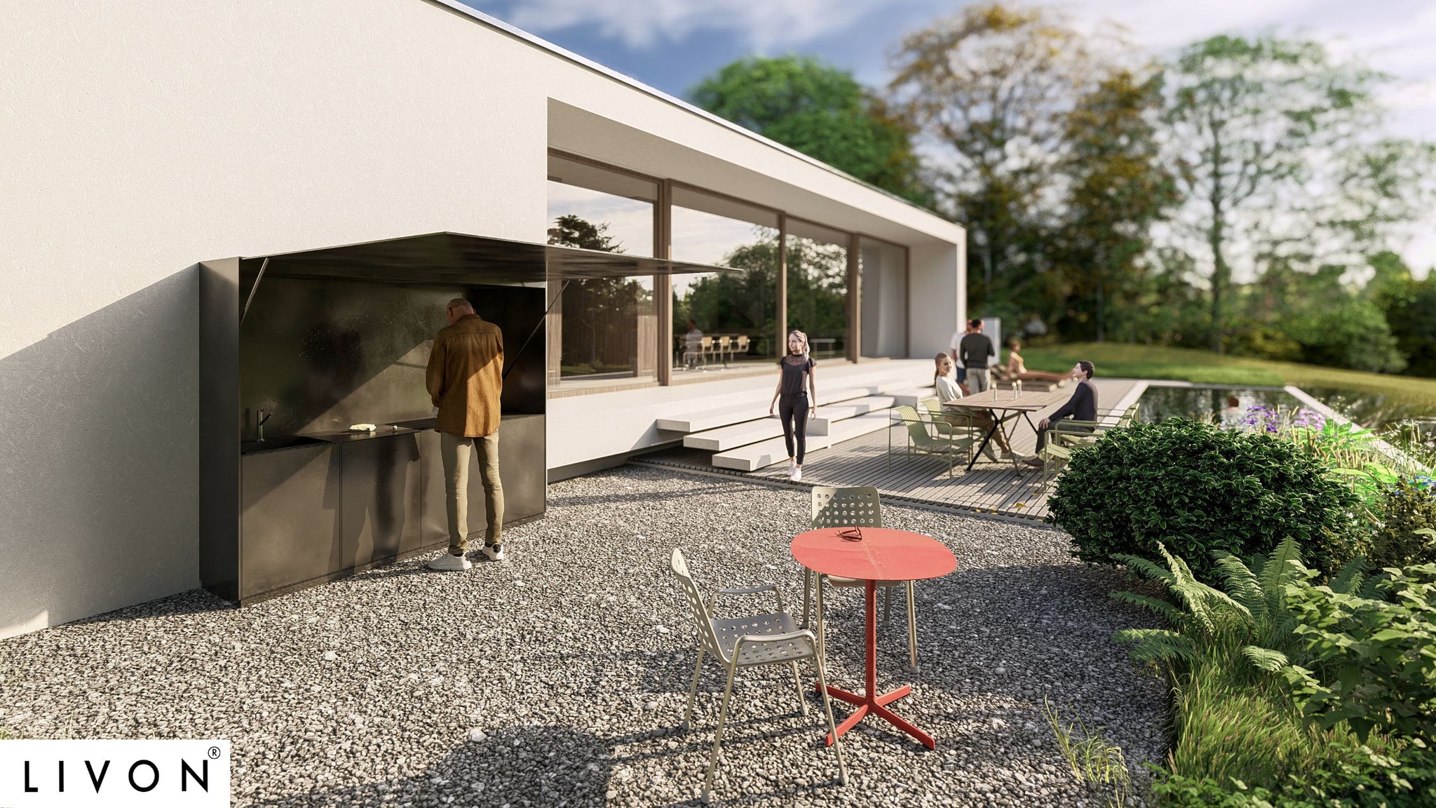 Outdoorküche ETERNITY – aufklappbarer Schrank mit Stahlverkleidung